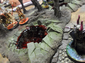 The Tzeentchian Garden Idyll had become under threat from a nasty Nurgly swamp, and each side had been tasked with ridding the others patch. A brilliant idea that really set the tone for the game. We set up on the warhammer world Valley of skulls Table .